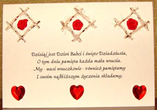 Te laurki pełne kwiatków są dla wszystkich babć i dziadków. U nas znajdziesz wyselekcjonowaną listę, które są idealne na życzenia na dzień babci i dziadka. Na dzień babci i dziadka wiele wnuków szuka oryginalnych życzeń dla dziadków. Seniorzy swoje święto obchodzą już za kilka dni! Witam serdecznie wszystkich naszych gości: W okolicach 21 i 22 stycznia w wielu miejscach odbywają się uroczyste akademie: Głośne czytanie wierszyków i bajek to mile spędzony czas, to strawa duchowa dla dziecka, powinno więc dostawać ją regularnie, podobnie jak posiłki. Wybierając się z wizytą, możemy przygotować drobny prezent na dzień babci i dziadka. Wierszyki są doskonałym materiałem do czytania dla dzieci. Życzenia na dzień babci dzień dziadka, wierszyki dla babci wierszyki dla dziadka. Nasi dziadkowie będą szczęśliwi, jeśli odwiedzimy ich lub chociaż do nich zadzwonimy w dniu ich święta. Mamy dla ciebie wzory życzeń: Coś na twojej głowie lśni.